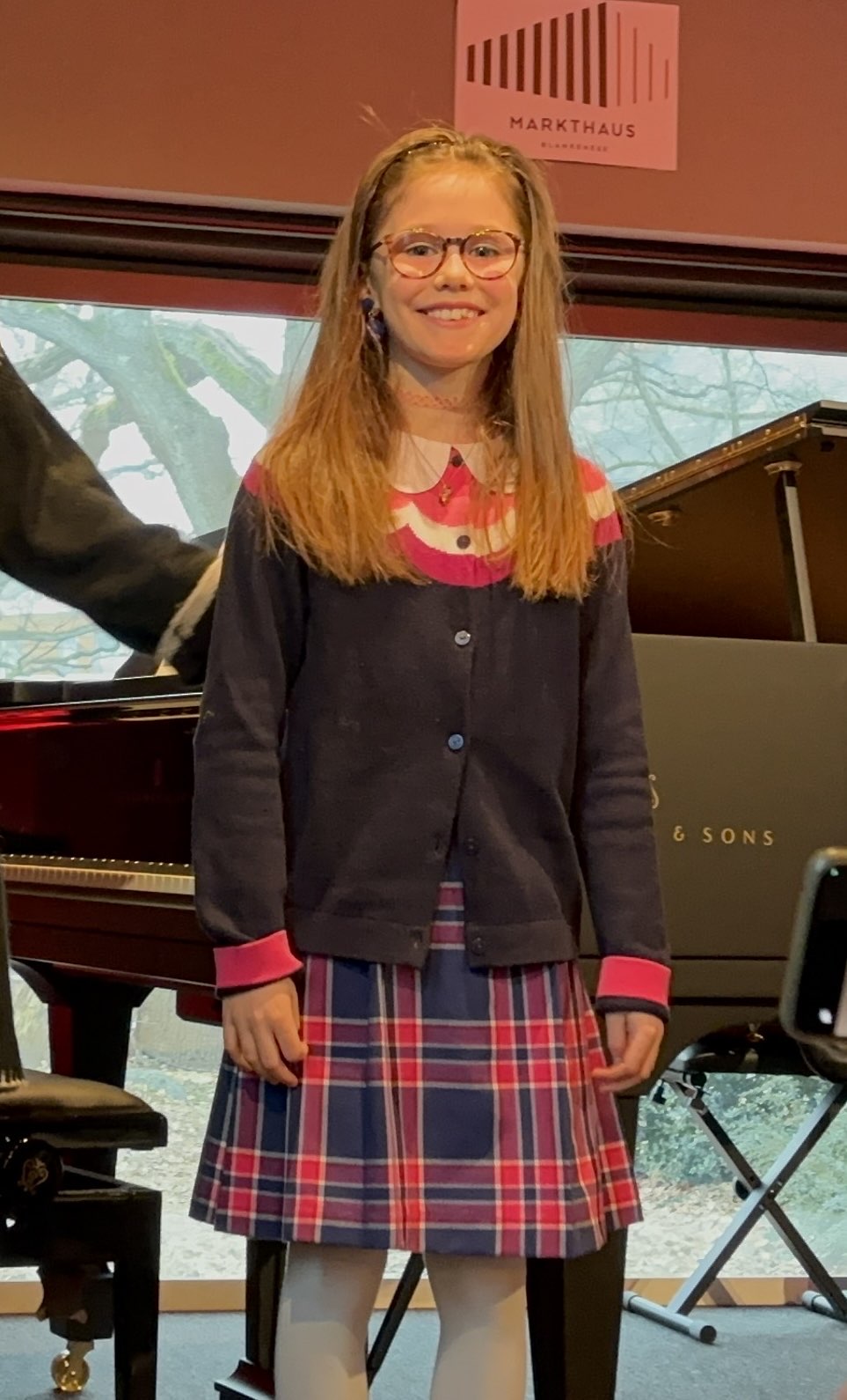 Cosima, 9 J. hat alle 3 Stücke auswendig, sehr ausdrucksvoll gespielt und professionell präsentiert. Das Publikum war begeistert. Youtube-Video: Mondscheinsonate Beethoven (Arr.) sowie die Ballede pour Adeline von Clayderman